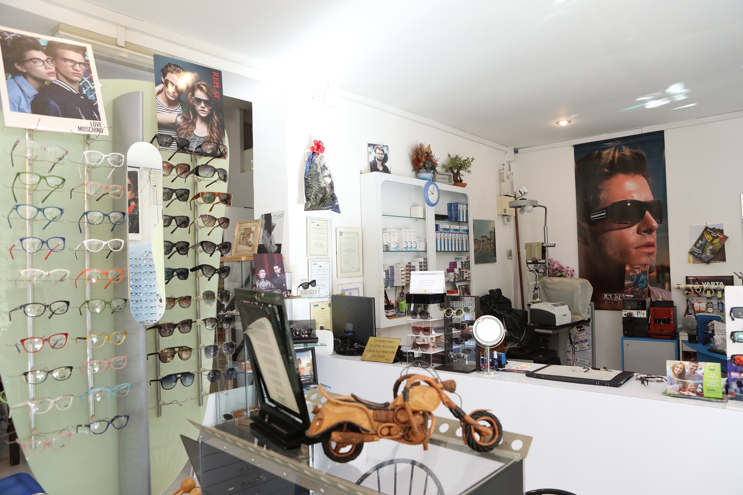 L’ottica di Eleonora Ischiboni punta molto alla qualità degli articoli a disposizione dei propri clienti. Ecco i brand per le montature da vista e da sole: Missoni, Moschino, Love Moschino, Furla,Trussardi, Smorfia, Benetton, Look, Lookino, Replay, Woody Barcellona, La Martina, Web, Kenzo, Via Appia, Opposit, Zerorh, Polar.